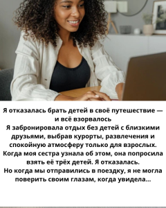 Потом сестра вынесла всё это в семейный чат. Она написала длинное сообщение в стиле манипуляции чувством вины о том, что «некоторые люди» (то есть я) не понимают семейных обязанностей, и что ей пришлось срочно искать няню, потому что её «не включили». Теперь половина родственников считает, что я бросила одинокую маму в беде, вместо того чтобы просто съездить в отпуск с друзьями, который я планировала месяцами.